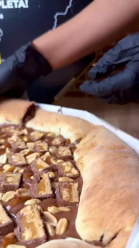 Nossa maior alegria e poder proporcionar experiências novas e sem iguais para cada um de vocês! Dessa vez não vai se diferente uma combinação perfeita para os amantes de @snickersbr com CREME de CARAMELO com uma pitada de amendoim, tudo certo para te fazer apaixonar!! 😍🫶🏻 *A pizza do video e de nossa linha Premium (10 fatias) com borda adicional de chocolate ao leite* #chocolovers #chocolate #pizzalover #pizzatime
