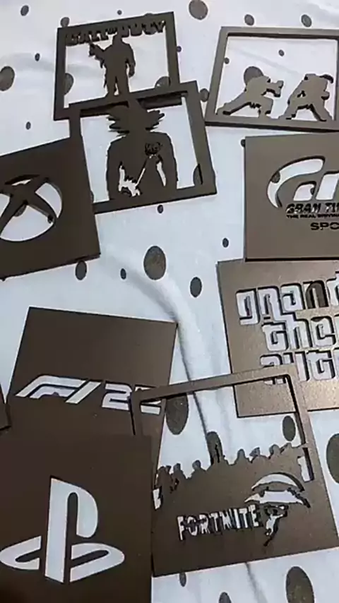 Mini Coleção 20 Quadrinhos Gamer 2_4 em MDF 3mm pintado preto fosco