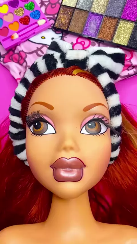 ASMR Mannequin Makeup Red Hair Style Skincare routine #asmr #asmrmakeup #hairstyle #makeupartist #skincareroutine