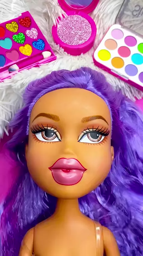 ASMR Mannequin Makeup Beautiful Doll purple hair #asmr #asmrmakeup #makeup #skincare #makeupdoll