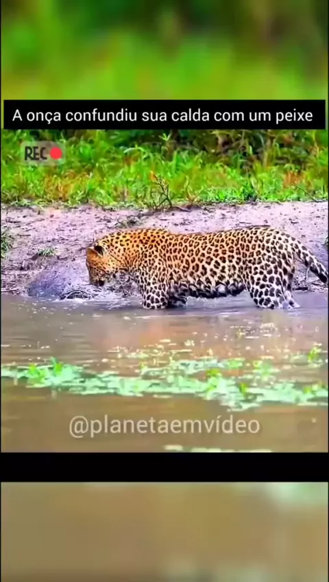 A onça confundiu sua calda com um peixe #mundoanimal #onça #engraçado