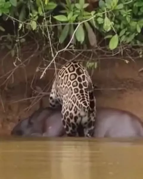 Onça caçando anta.
