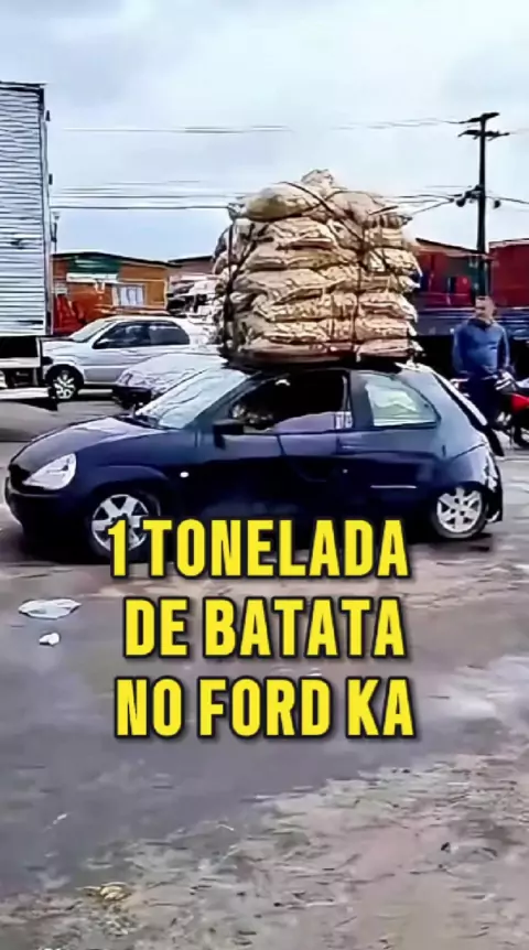 Ford Ka é flagrado com 1 tonelada de batatas no teto, na CEASA de Curitiba. Além do teto, havia sacos de batata dentro do carro também. #curitiba #noticias