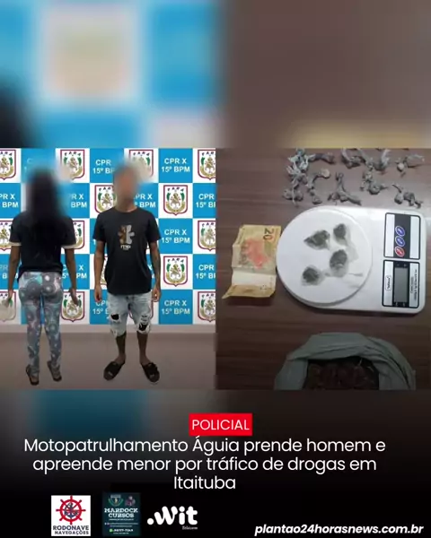 Suspeitos tentaram se desfazer de entorpecentes ao avistarem a polícia no bairro Sol Nascente. Leia mais: https://plantao24horasnews.com.br/motopatrulhamento-aguia-prende-homem-e-apreende-menor-por-trafico-de-drogas-em-itaituba/