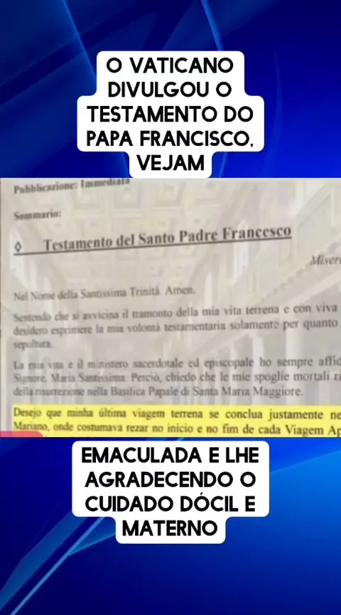 O Vaticano divulgou o testamento do papa Francisco, vejam #reportagem #jornalismo #News #Criminal #noticias