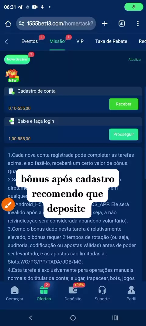 plataforma dando bônus no cadastro
