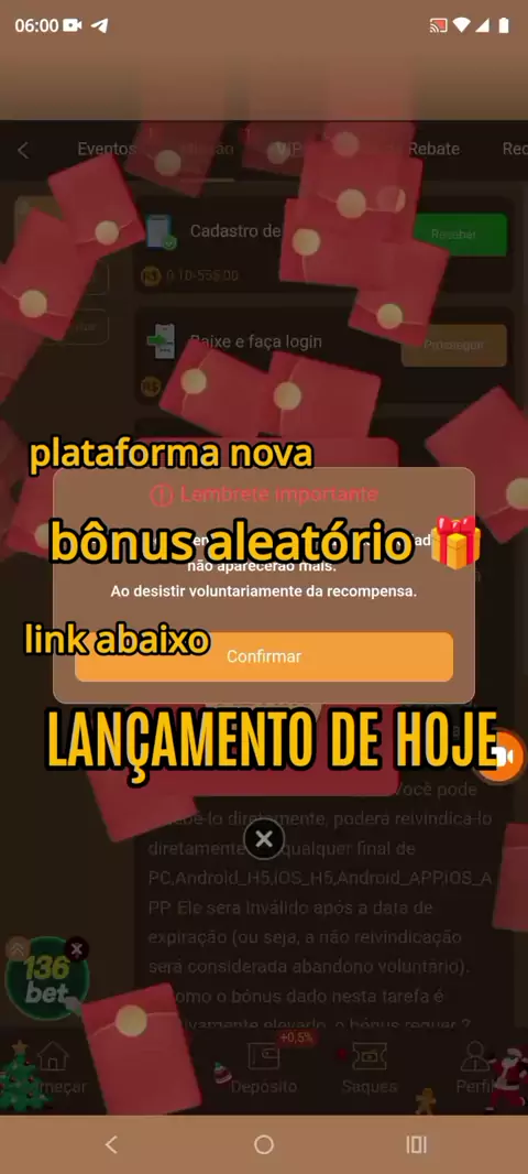 plataforma dando bônus no cadastro