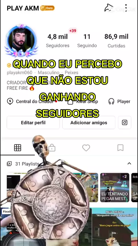 QUANDO EU PERCEBO QUE NÃO ESTOU GANHANDO SEGUIDORES #SKELETON #FREEFIRE