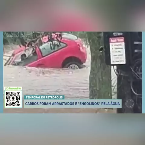 Carros foram arrastados pela รกgua durante um temporal em Petrรณpolis. #BalanรงoGeralRJ ๐Ÿ“ฝ๏ธ Reproduรงรฃo/Record Rio