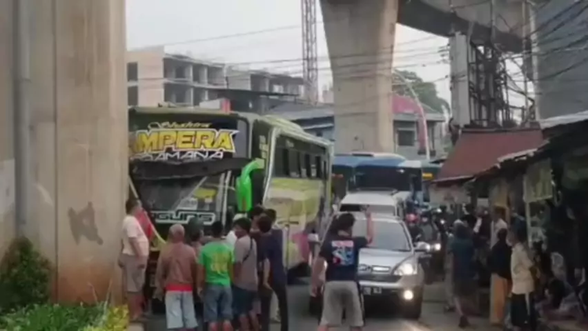 Bus Putri Luragung Nabrak Tiang Pembatas Jalan #bus #putri #L #f #sukmajati_tv