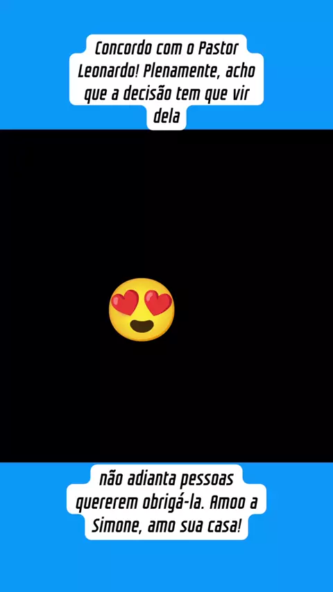 Concordo com o Pastor Leonardo! Plenamente, acho que a decisão tem que vir dela,não adianta pessoas quererem obrigá-la. Amoo a Simone, amo sua casa!