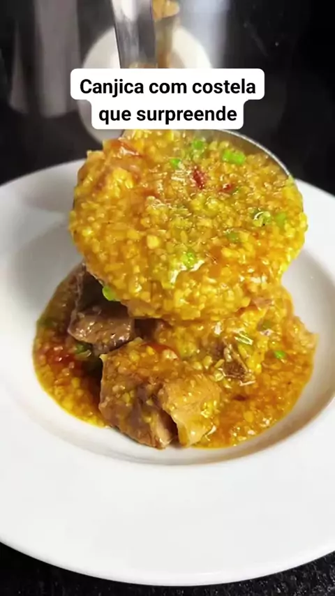Costela de porco, canjica, cebola, alho, tomate, extrato de tomate, limão, pimenta calabresa, sal e cebolinha. #ReceitaDiferente #ComidaCaseira #Canjica #CozinhaSimples #PoderosaDrinks