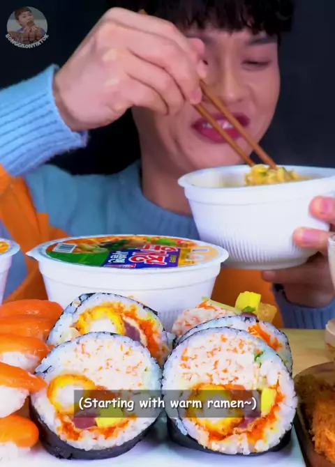 Macarrão quente picante com sushi camarão frito mukbang ~!! # # # page # bonggigil # bonggil _ asmr # bonggilno # mukbangbonggil # eatwithbonggil # mukbang # asmr