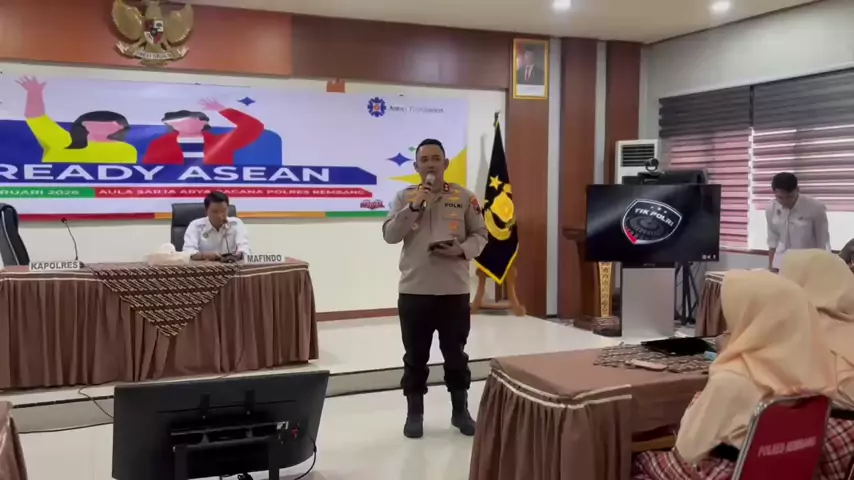 Kapolres Rembang AKBP M. Faisal Pratama, SIK, SH, MH membuka acara AI Ready Asean di Aula Mapolres Rembang bagi perwakilan siswa siswi SMA/SMK se Kab. Rembang, di harapkan kegiatan ini dapat membentuk etika dalam penggunaan AI. #padahariini #rembang24jam #satlantasrembang #etilang #remaja