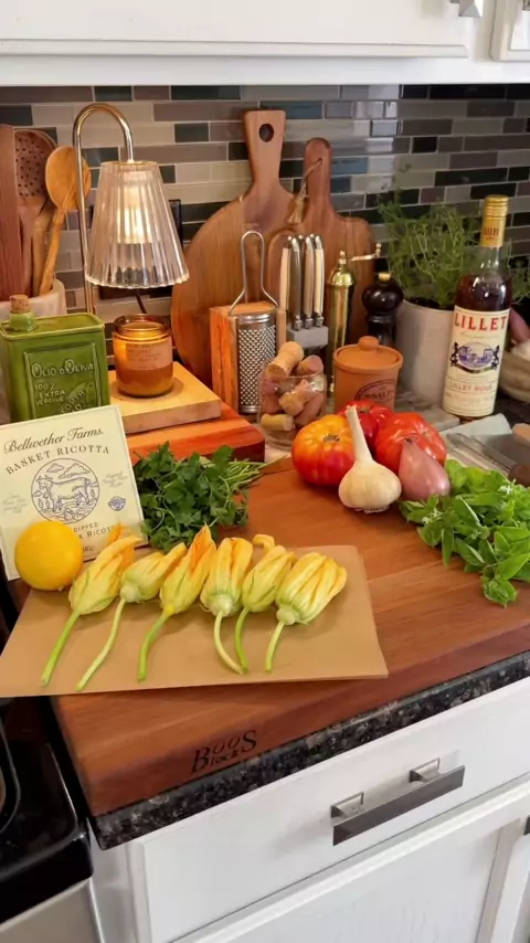 Flores de abobrinha fritas com uma marinara heriloom # zuchinni # zuchinniblossoms # zucchiniflowers # friedzucchini # summerrecipes # yum # age