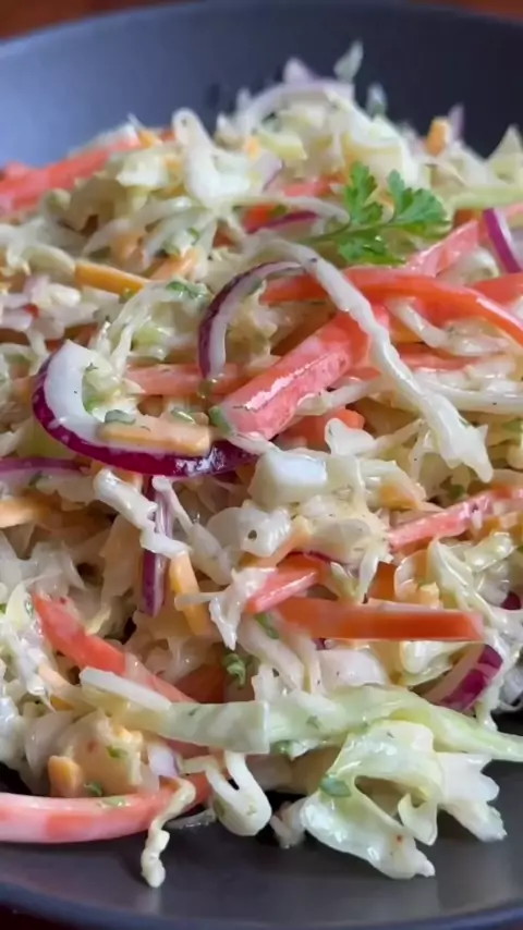 Salada de repolho Ingredientes: - 1 repolho - 2 cenouras - 1/2 cebola roxa - 1/4 de xícara de salsa Para o Molho: - 1/2 xícara de maionese - 2 colheres de sopa de mostarda Dijon - 1 colher de sopa de mostarda integral - 2 colheres de sopa de vinagre de maçã - 2 colheres de sopa de mel - 1/2 colher de chá de flocos de pimenta vermelha (a gosto) - Sal e pimenta do reino a gosto