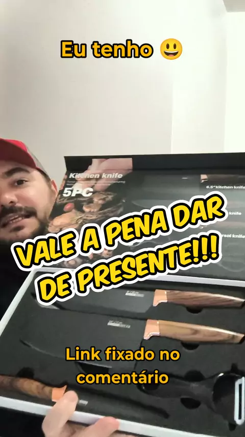 Jogo De Facas Faqueiro Inox 5 Peças Profissional cabo Madeira com Dourado ‪ #SHOPEE #cozinha #presente #viraliza #maisviews