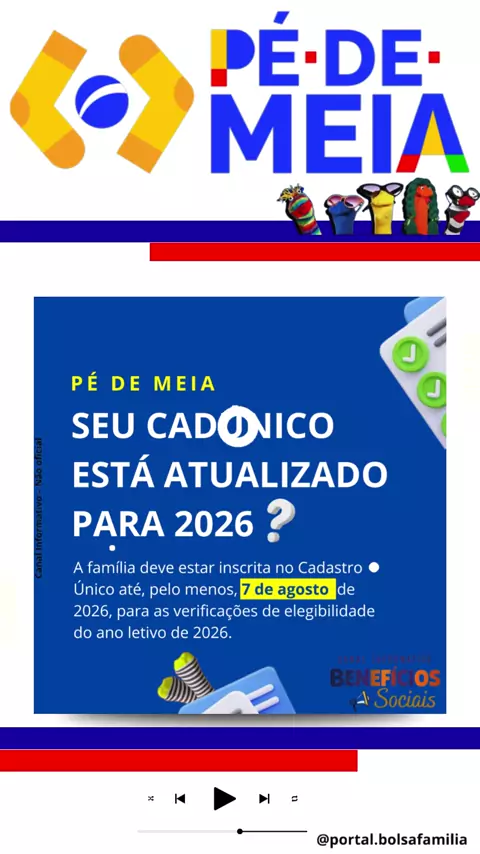 Canal informativo. 📍Canal exclusivo para informaçÔes relacionadas ao Bolsa famĂ­lia e Cadastro Ășnico. Sejam todos bem vindos! YouTube 👇 https://www.youtube.com/@portal.bolsafamilia