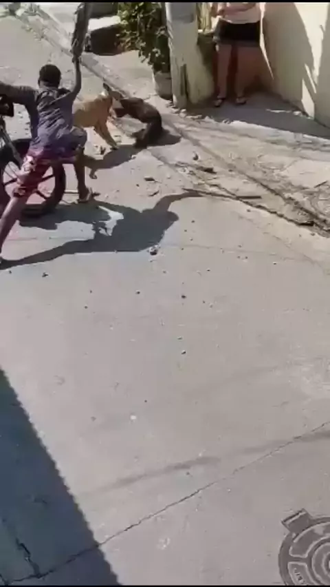 Ataque brutal do Pitbull contra um cachorrinho que estava passeando com sua dona, infelizmente não resistiu. #Curta #Mesigam #Compartilhe