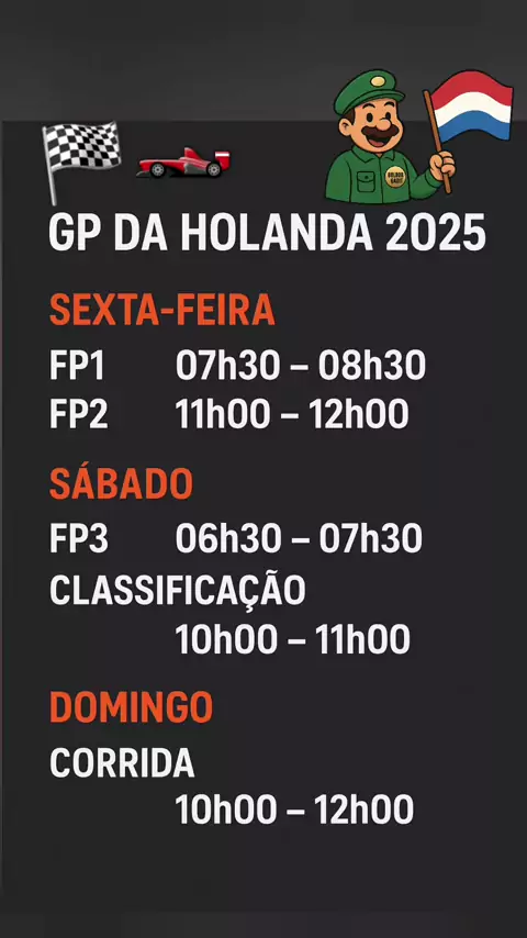 Horários Do GP da Holanda, 2025! Horário de Brasília. #f1 #f1brasil #foryou #fyp