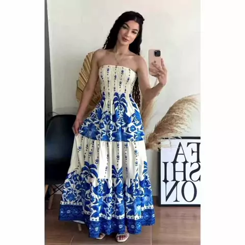 VESTIDO ESTAMPADO TOMARA QUE CAIA por R$85,00 - R$89,99. Compre em collshp.com/atilastar #vestidos #viral