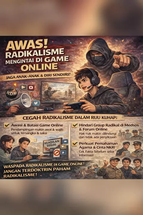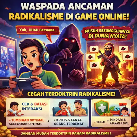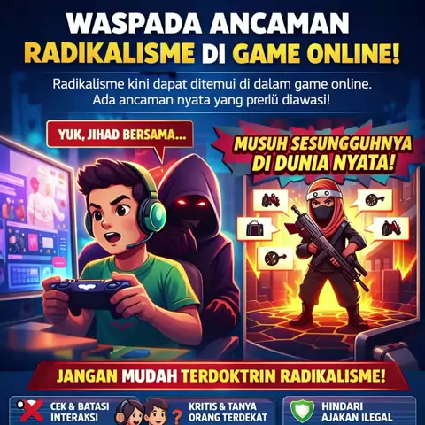 Awas radikalisme mengintai di game online, jaga anak dan diri sendiri dengan batasi game dan hindari grup radikal! #AwasRadikalisme #GameOnlineAman #CegahRadikalismeDigital #JagaAnakDariRadikalisme #WaspadaGameOnline