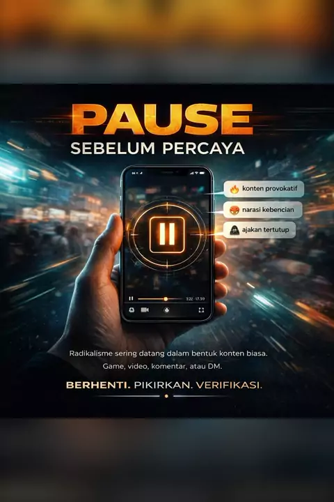 Main game, bukan main ideologi! Radikalisme menyusup lewat game dan media sosial dengan propaganda terselubung. Berpikir kritis, lawan propaganda, laporkan konten berbahaya, tolak ideologi radikal, dan edukasi diri serta orang terdekat. Jangan biarkan hiburan jadi jalan masuk radikalisme! #MainGameBukanIdeologi #WaspadaRadikalisme #LawanPropaganda #GameAman