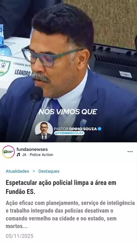 Vocês ouviram: quem pensa em trazer a violência para o Espírito Santo vai encontrar um povo unido e uma polícia determinada. Não queremos show para criminosos queremos ordem, justiça e respeito às vítimas. Aplaudo quem protege nossas ruas. #Segurança #OrdemEProgresso #ForçaEHonra