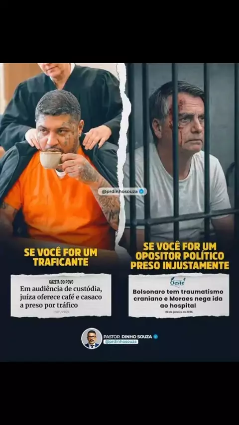 Enquanto juízes oferecem café e casaco a presos por tráfico sem consequências reais, vemos decisões controversas sobre cuidados médicos para líderes opositores ao status quo. Isso expõe uma justiça que precisa ser reformada e aplicada com igualdade real para todas as pessoas, independentemente de poder ou ideologia. O Brasil merece uma justiça que proteja a lei, a família e os valores da nossa sociedade — sem privilégios e sem parcialidade. 📌 Em audiência de custódia, uma juíza ofereceu café