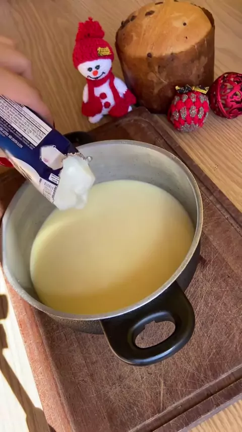 Pavê de Chocotone Ingredientes 1 chocotone picado em cubos 1 caixa de leite condensado 1 caixa de creme de leite 3 colheres de sopa de leite em pó 2 colheres de sopa de amido de milho (colocadas direto no creme, sem dissolver) 500 ml de leite Leite em pó para finalizar Bombons Sonho de Valsa picadinhos para decorar