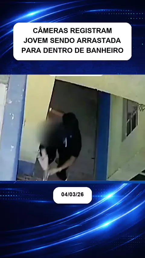 Câmeras registram momento em que jovem é arrastada para dentro de banheiro.
