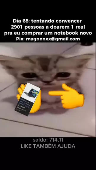 me ajuda a chegar no notebook? đŸ™đŸ» Ă© sĂł 1 real! juntos nĂłs conseguimos ♄ chave Pix: magnnoxx@gmail.com saldo: 714,11