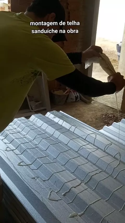 colando isopor na telha de zinco #obras #construcao #engenharia #top #TelhadoSanduiche