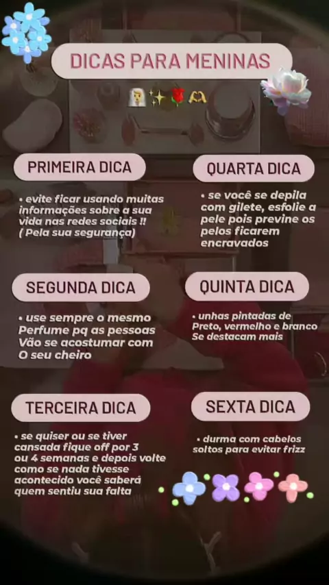 PERFIL DE DICAS, PENTEADOS, UNHA, PELE FEMININA!!!🌺🦋✨ SOMENTE MENINAS!!🌹 segue aí pra mais dicas!🎀
