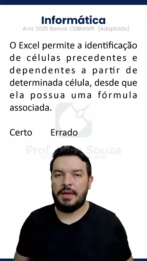 Questão sobre Excel 🎬 Curso Informática para Concurso – Do zero ao Avançado 🚀 ✅ 40h horas de vídeo aulas ✅ Apostila em PDF de cada aula ✅ Questões comentadas Garanta sua aprovação! 💻📚 👇 Link na Bio . . #informáticaparaconcursos #concursospublico #questaodeinformatica #questaodeconcursos #gabariteinformática