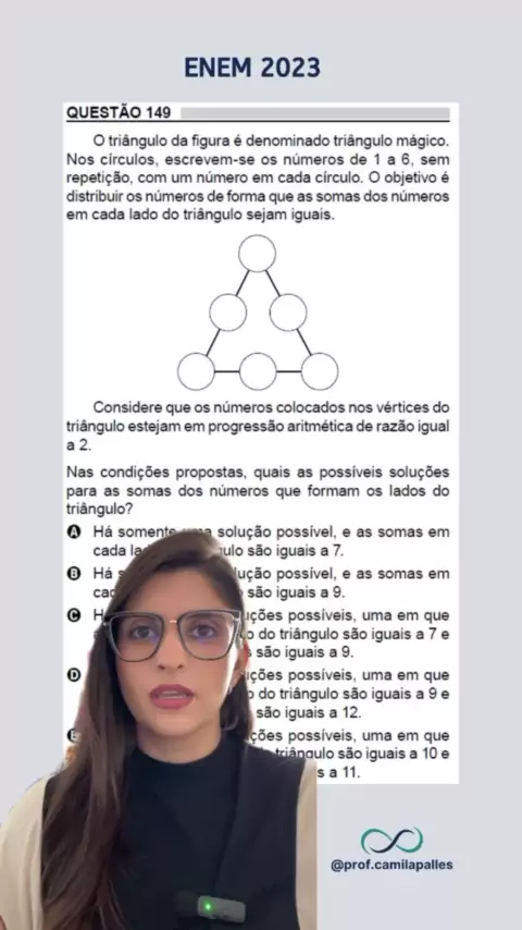 Quais as possíveis somas para os lados do triângulo mágico? 🤔 #enem #enem2023 #matematica #vestibular #matematicabasica