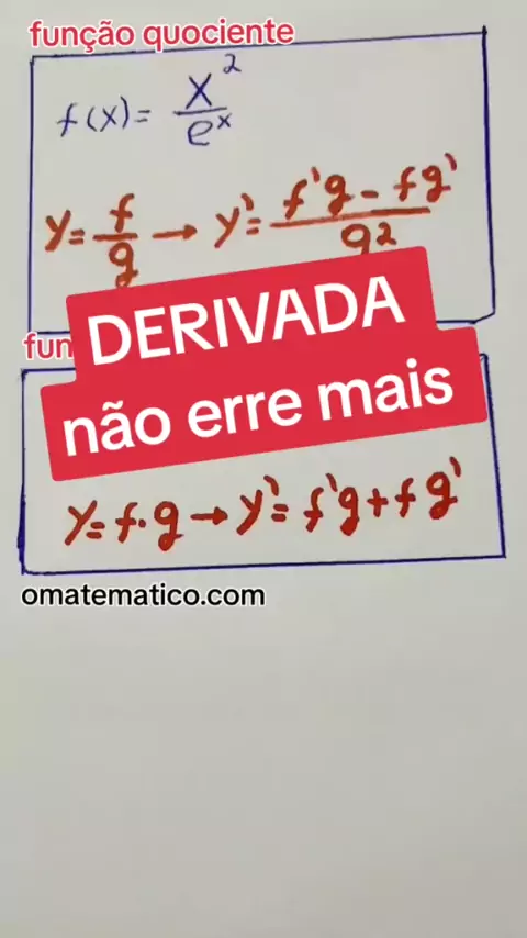 🚀 DERIVADA função quociente e função produto #calculo #grings #derivada #matematica