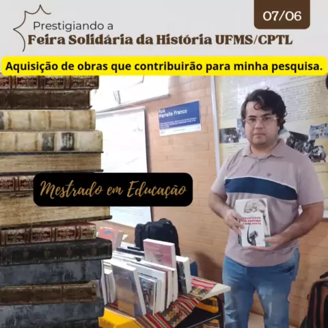 Prestigiando a @feirasolidariahistcptl, hoje dia 07/06, aproveitei para adquirir obras que contribuirão em minha pesquisa. #cptl #mestradoemeducação #ufmscptl