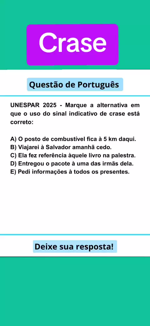 UNESPAR 2025 Questão de português comentada sobre crase #portugues #maisviews #concurso #maisviews #fy
