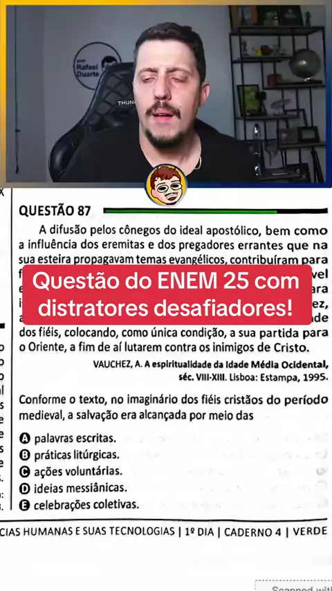 📚 Uma das questões que mais entregam o “nível oculto” da prova de Humanas do ENEM 2025. A banca não cobrou só leitura — cobrou vocabulário conceitual. E quem não domina esse tipo de termo… travou. Nessa questão, o texto fala sobre a espiritualidade medieval, o ideal apostólico e a abertura da Igreja para a “graça” mediante uma condição: a ação do fiel. Ou seja: não é palavra escrita, não é celebração, não é liturgia. É agir — partir para o Oriente, lutar, participar ativamente da salvação. Por...