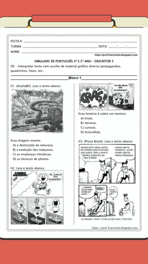 SIMULADO DE PORTUGUÊS 4º E 5º ANO – DESCRITOR 05 #simulado #atividade #educação #kwai