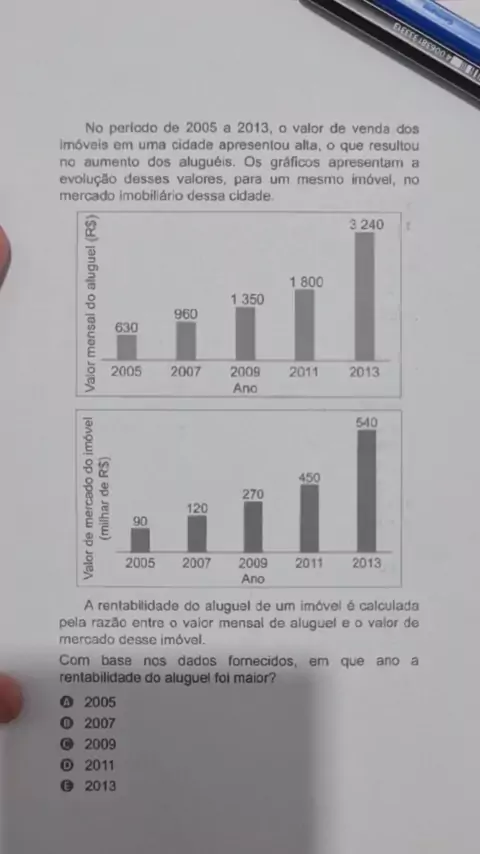 Enem 2022 - No período de 2005 a 2013, o valor de venda dos imóveis... #Enem #enem2022
