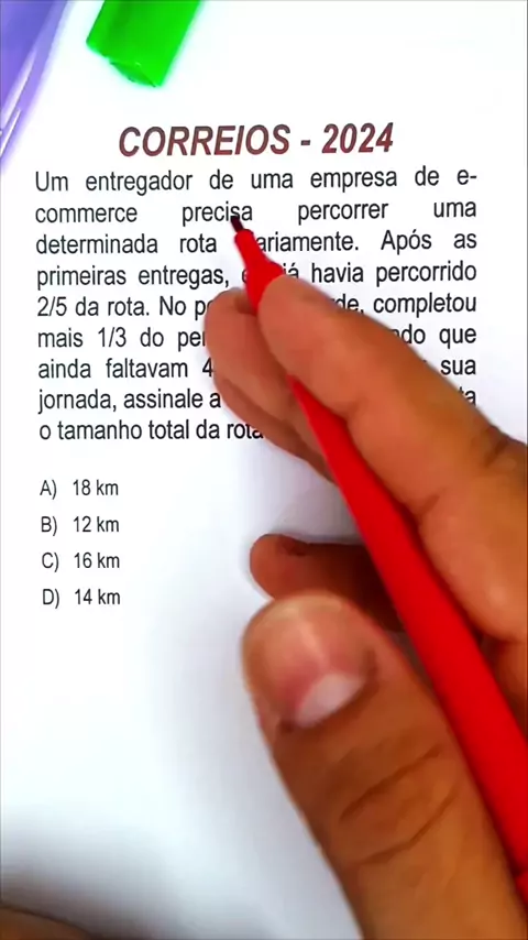 CORREÇÃO CORREIOS 2024 Matemática - Um entregador de uma empresa de e-comerce precisa percorrer uma determinada rota #correios #correios2024 #matematica #educação