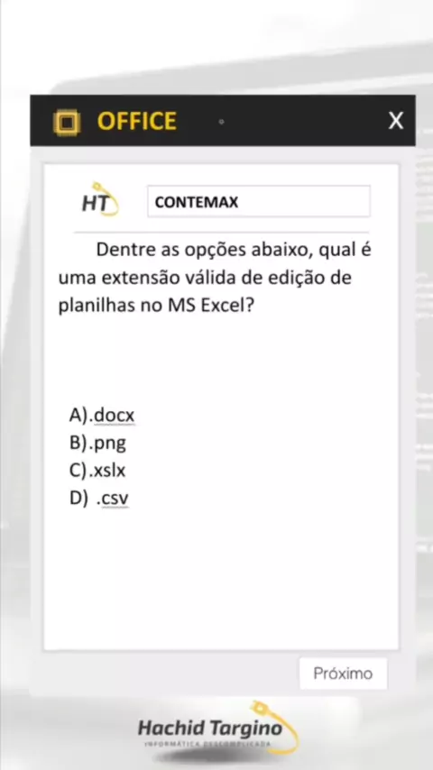 Qual a extensão suportada pelo Excel? 💻💻💻💻💻💻💻💻💻💻💻 . . . . . 😊 Comenta aí o que você achou❓️ 📲 Compartilha com os amigos... 🙊 Me fala o que você gostaria de saber.... 🚀🚀🚀🚀🚀🚀🚀🚀🚀 💀💀💀💀💀💀💀💀💀 #concursospúblicos #concurseiros #mapasmentais #concursopublicos #informática