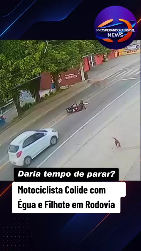 Imagens impressionantes de uma câmera de segurança, enviadas à Rádio Costa Azul, mostram um acidente ocorrido nas primeiras horas da manhã deste sábado (10), por volta das 5h38, na Rodovia Oswaldo Cruz, próximo à entrada do bairro Marafunda. No vídeo, uma motociclista segue pela rodovia quando é surpreendida por um cavalo atravessando a pista junto com seu filhote. O impacto provoca a queda da mulher, enquanto os animais fogem do local. Logo em seguida, outros motociclistas param para Ajudar
