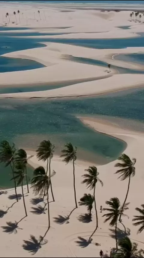 Lençóis Maranhenses? NÃO! Esses são os Pequenos Lençóis, em Tutóia, no Maranhão. Geralmente quem faz a Rota das Emoções passa por esse paraíso. Além das famosas lagoas, aqui o visual conta com enormes coqueiros e proximidade com o mar. Conta pra mim: você já tinha ouvido falar dos Pequenos Lençóis?