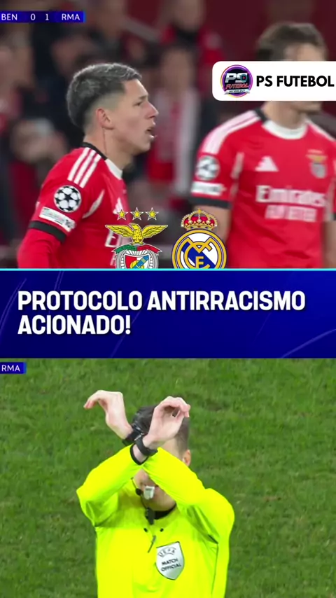 LAMENTÁVEL! 🚫 Após Vini Jr. marcar um GOLAÇO contra o Benfica, o árbitro precisou acionar o protocolo antirracismo por uma possível fala racista de Gianluca Prestianni direcionada ao craque brasileiro. ESTAMOS CONTIGO, VINI! Benfica x Real Madrid