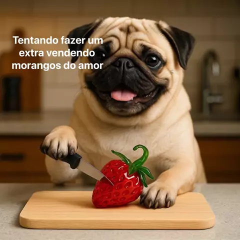 Moranguinho do amor ๐Ÿ“โฃ๏ธ #morango #pugs #pets #ia #amocachorro