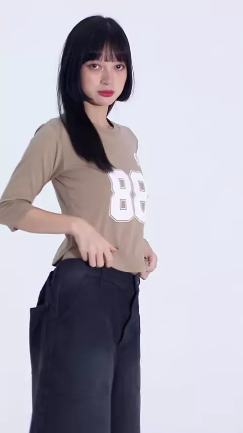 in frame: NOMOLU - Crop Top Tee Kaos Wanita Lengan 3/4 EIGHTY-EIGHT#Nomolu#croptop#croptopcewek#fashion