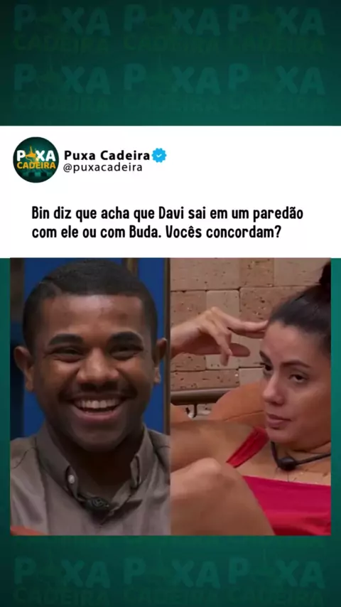 Na academia, Bin disse em qual paredão acha que Davi tem chances de sair: com ele mesmo ou com Buda. Fernanda, então, perguntou qual seria a terceira pessoa da berlinda, mas o cantor não soube responder. Acha que num paredão com esses três o Davi sai? 🧐 😂